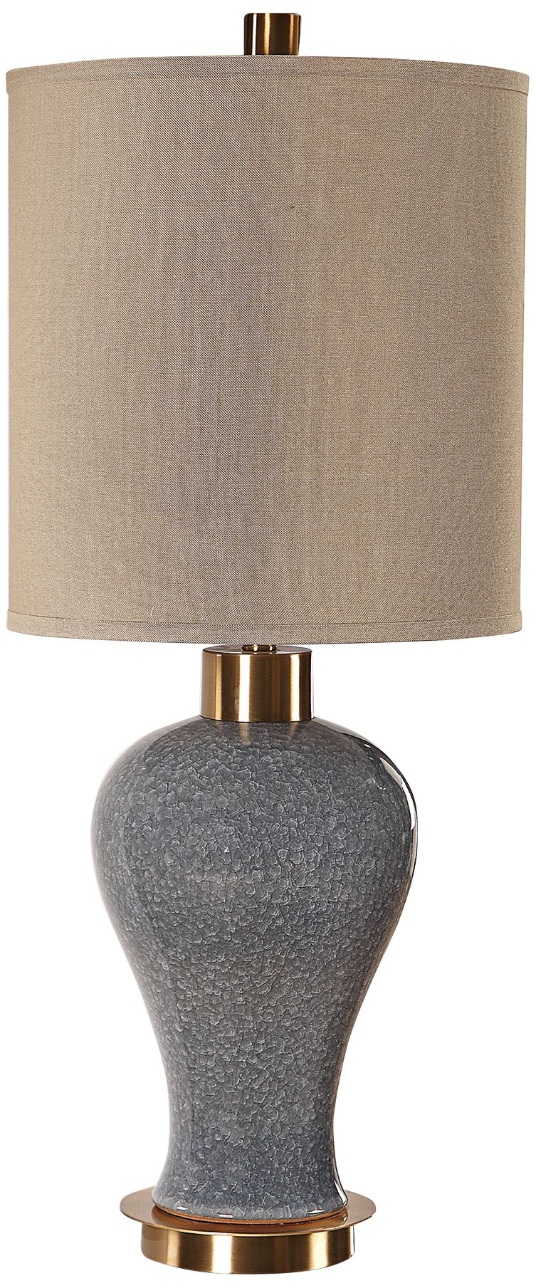 Textured ceramic finished in a pale blue gray glaze accented with plated coffee bronze details. Price may vary by color. 20% off with code shopmaydeals. Free shipping* more like this michael berman hadrian nickel and ash ceramic table lamp $ 300.50. Shabby white floor lamp with gray round lamp shade.