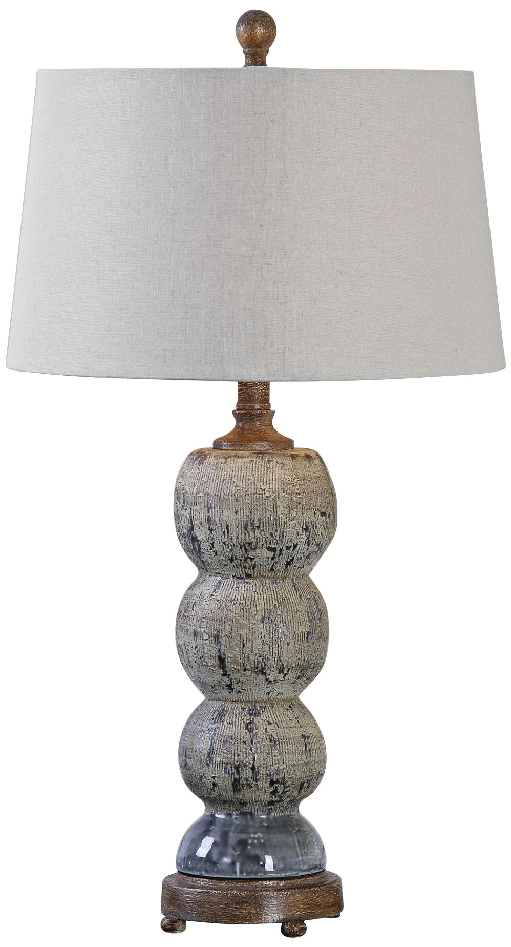 The mottled, light blue gray glass base and ivory linen shade of the uttermost 27076 celinda table lamp makes a welcome addition to any room. Find the right lamp for you today! 4.7 out of 5 stars 20. Bedroom, dining room, living room. This color combo does provide not only a calm atmosphere in the room but also elegant look at the same time.